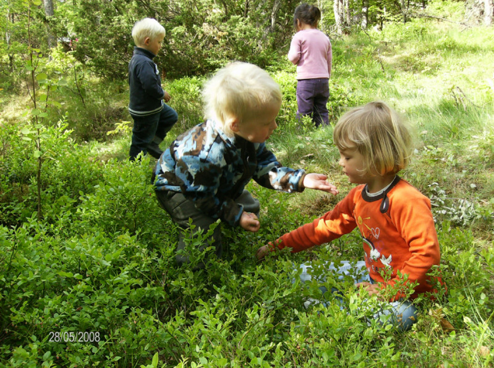 Vi kaller oss en natur- og gårdsbarnehage fordi vi legger stor vekt på at barna skal være mye ute og leke i naturen, kose og stelle med alle dyrene våre og bli kjent med alle vekstene i den økologiske kjøkkenhagen vår. Vi har hester, sauer, høner og kattepuser! Og innimellom kommer det både nye lam, kyllinger og kattunger! Skogen som hører til gården og barnehagen byr på flotte leke- og turområder og der har vi bl.a. en stor lavo, campen, husker, klatremuligheter osv. Vi liker å være på tur - og er ute i all slags vær!
